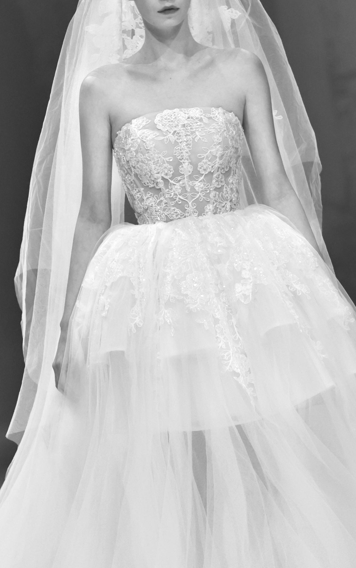 Colours transition fluidly, from dawn’s serenity to twilight’s mystery, and from soft ivory to deep bordeaux. Each layer of detail reveals the complex emotions woven into the collection—rich velvet, intricately embroidered lace, and gossamer tulles echoing the intensity of love’s many shades.