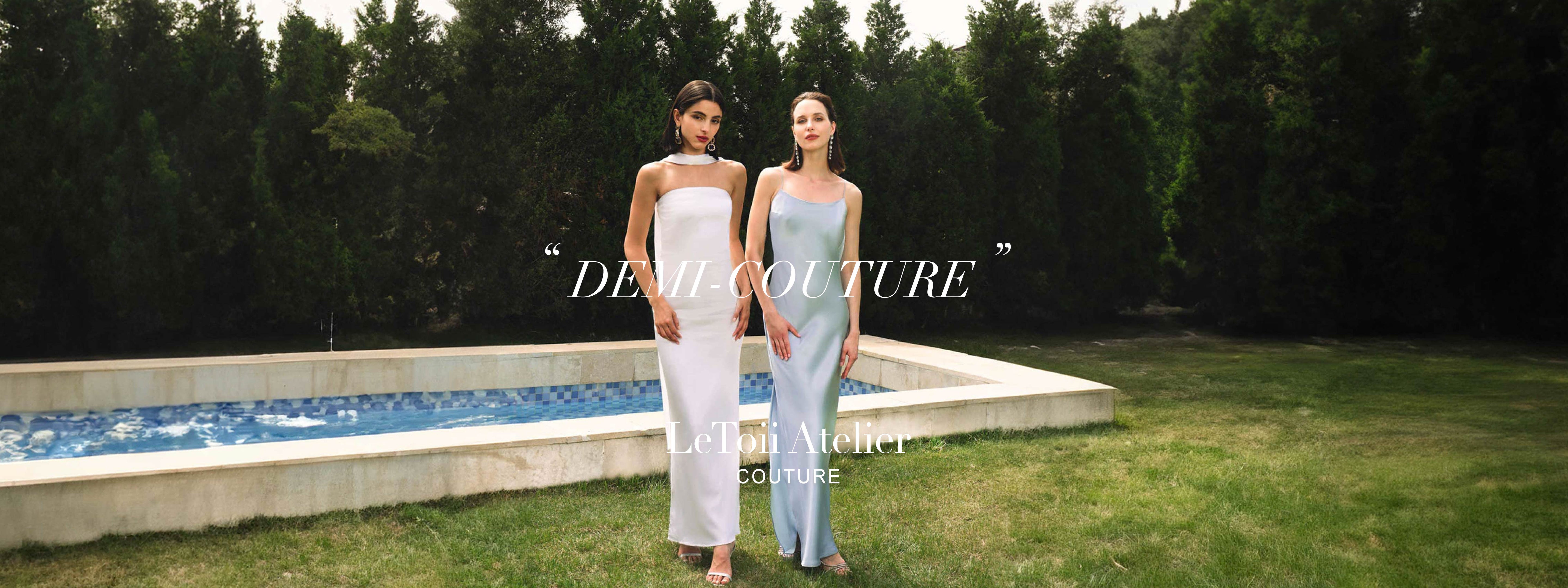 At LETOII ATELIER, we blend the artistry of French haute couture with Eastern and Western aesthetics to create timeless, personalized gowns. Our new "Demi-Couture" collection combines the exclusivity of custom tailoring with the practicality of daily fashion, making elegance an everyday affair.