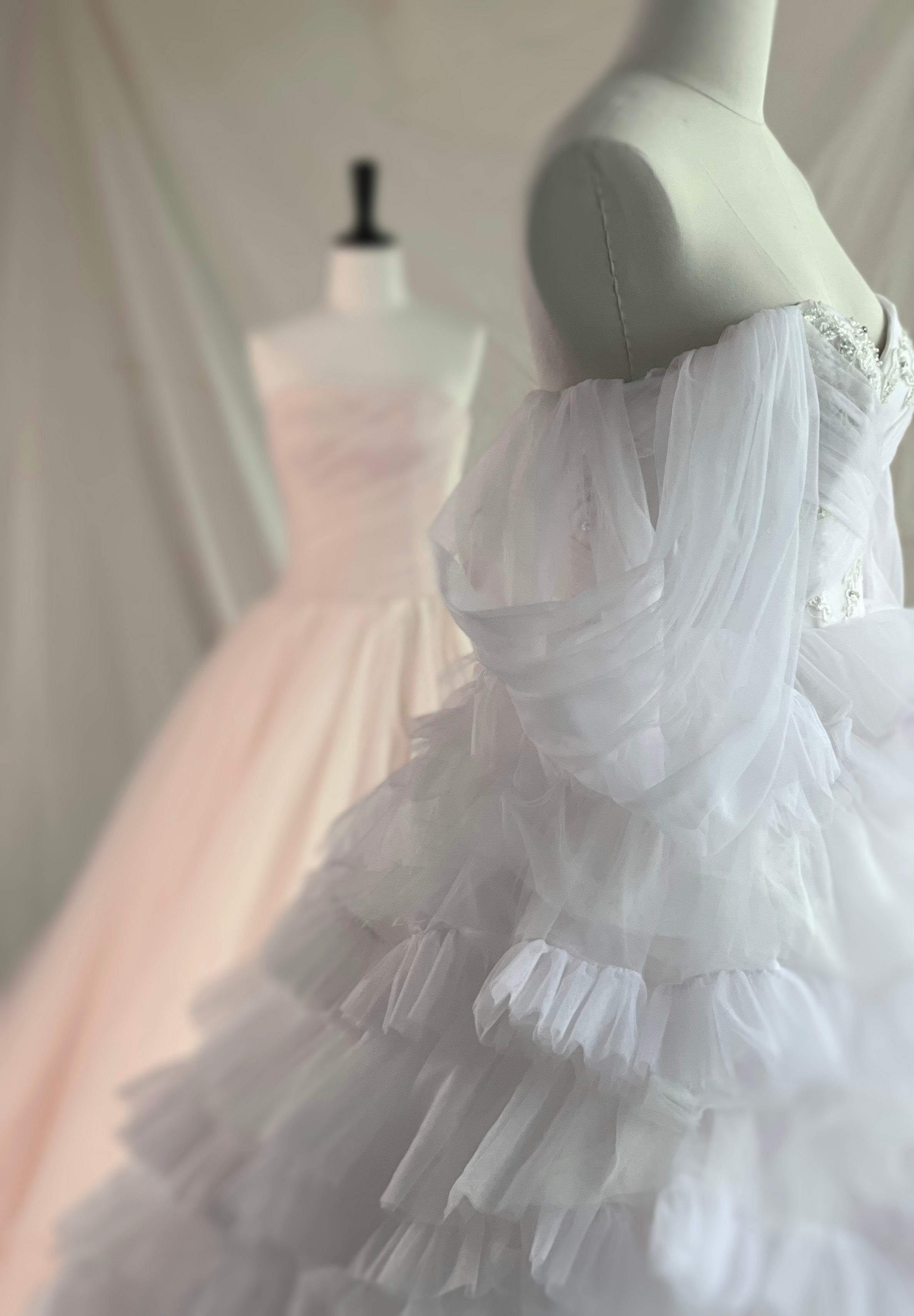 該系列訂製服裝的名稱恰如其分,與自然本身進行對話。它捕捉了精緻樹枝的優雅輪廓,沿著蜿蜒的花朵攀爬,以及森林中蝴蝶的芭蕾舞。透過抽象花卉蕾絲貼花、精緻雪紡和精心手工縫製的珠飾,該系列體現了一種空靈的存在,將每一位穿著其服裝的女性轉變為林地仙女——活生生的夢想,既有形又超現實。